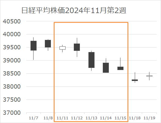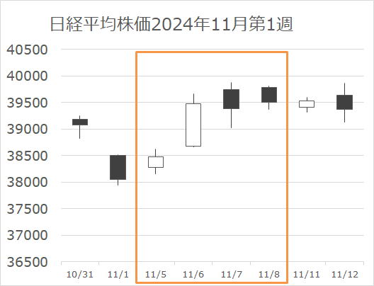 大統領選が火曜日にあり、日本水曜日の場中にトランプ氏優勢が明らかになった時点から株価が上昇していきました。