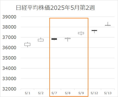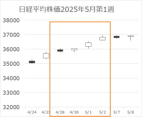 週初にトランプ大統領によるFRB議長解任のニュースが流れて、市場は大揺れ。しかし、その揺れに驚いたのか、すぐさま解任否定。その後は徐々に株価は戻っていきました。